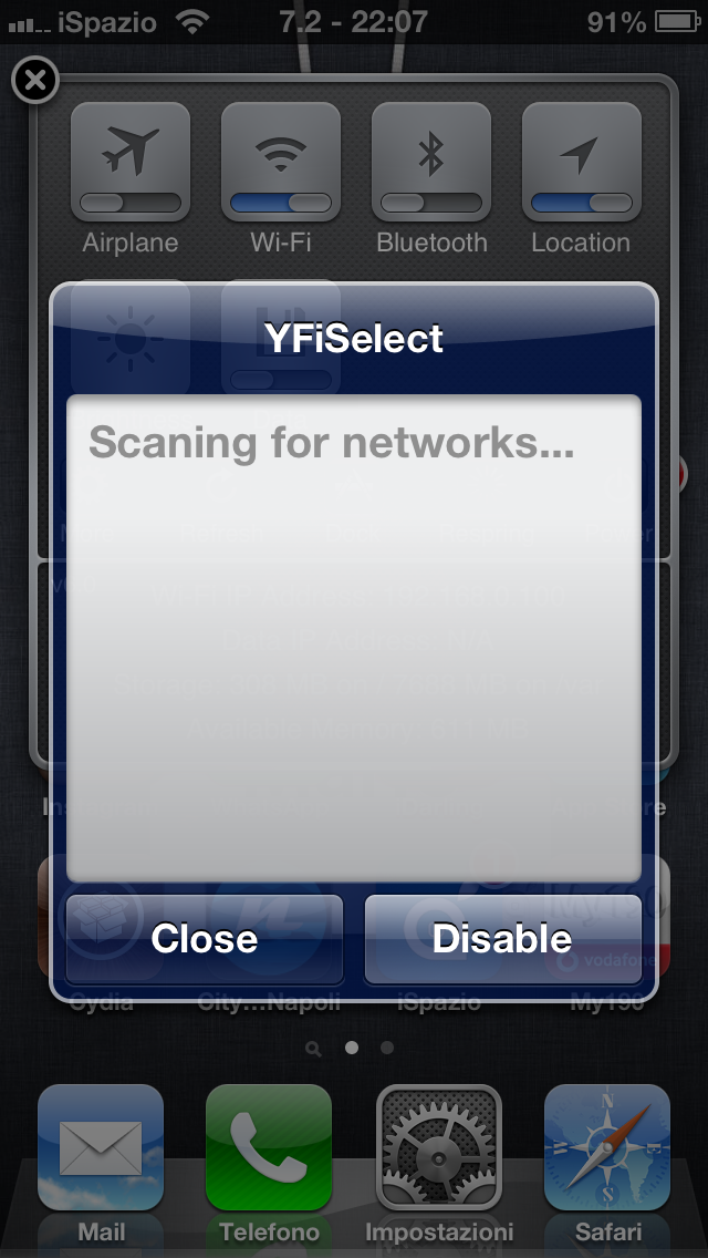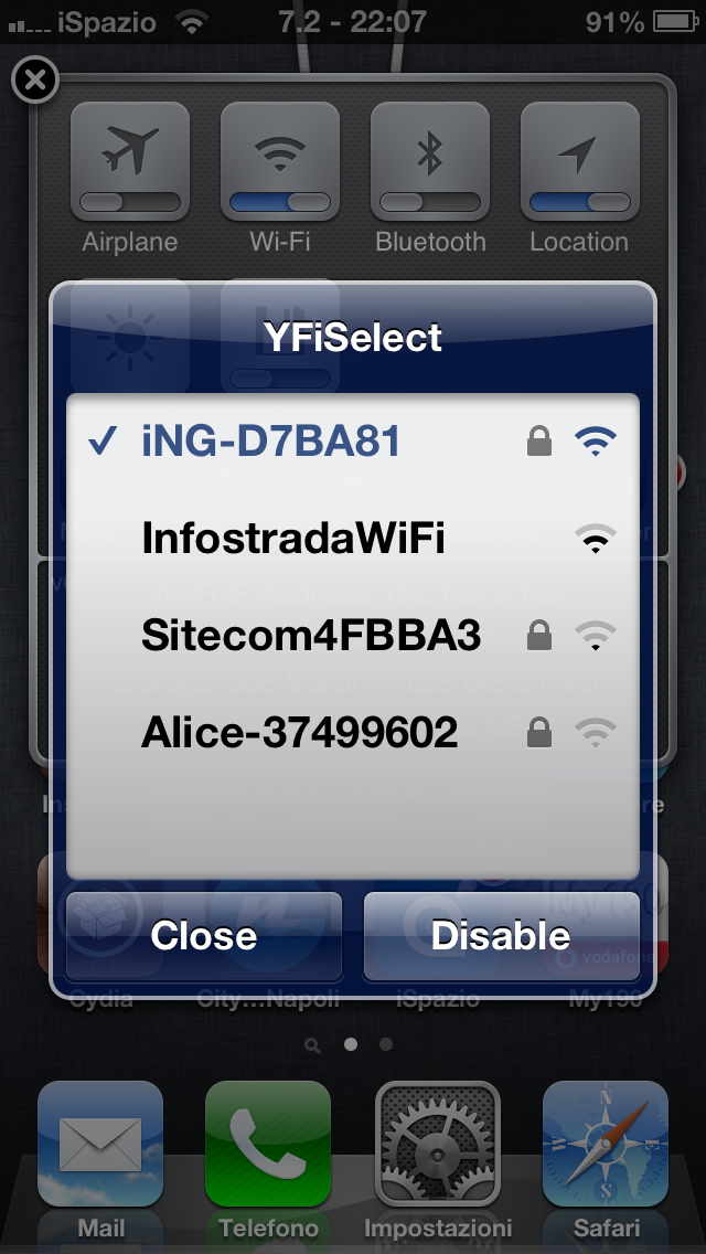 BlueSelect e YFiSelect non aggiungono nessuna icona nella Home e mentre il primo non richiede nessuna configurazione, YFiSelect aggiunge una voce in Impostazioni dove è possibile attivare e disattivare l’integrazione con SBSettings.