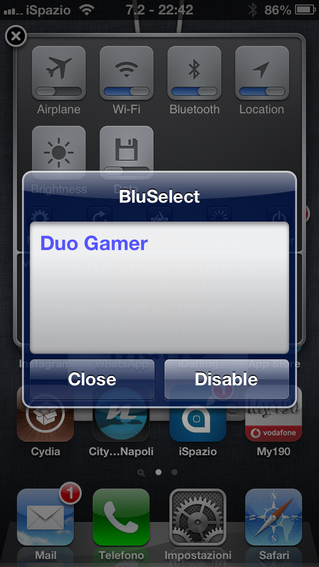 Per selezionare ogni volta un dispositivo Bluetooth è necessario aprire le Impostazioni, selezionare Bluetooth (con le versioni precedenti ad iOS 6 bisogna andare prima in Generali), e finalmente abbiamo accesso a tale funzione, mentre con BluSelect basta un doppio tap sulla barra di stato o qualsiasi altra gesto abbiate impostato con Activator e lo stesso vale per le reti Wi-Fi utilizzando YFiSelect.