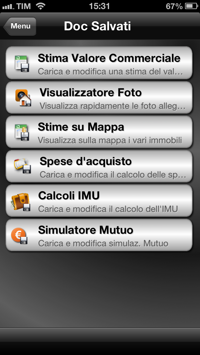 Per ogni stima, perizia, calcolo e quant’altro verrà stilato un report che possiamo salvare all’interno dell’applicazione, stampare, mandare via e-mail o eseguire con qualsiasi altra applicazione compatibile con i file PDF installata all’interno del nostro dispositivo. Dalle impostazioni possiamo anche inserire i Dati Operatore che verranno poi visualizzati in ogni report. Inoltre possiamo anche modificare i Coefficienti di Merito riguardo ai fattori posizionali dell’immobile, le caratteristiche dell’edificio e del costruttore dello stesso.