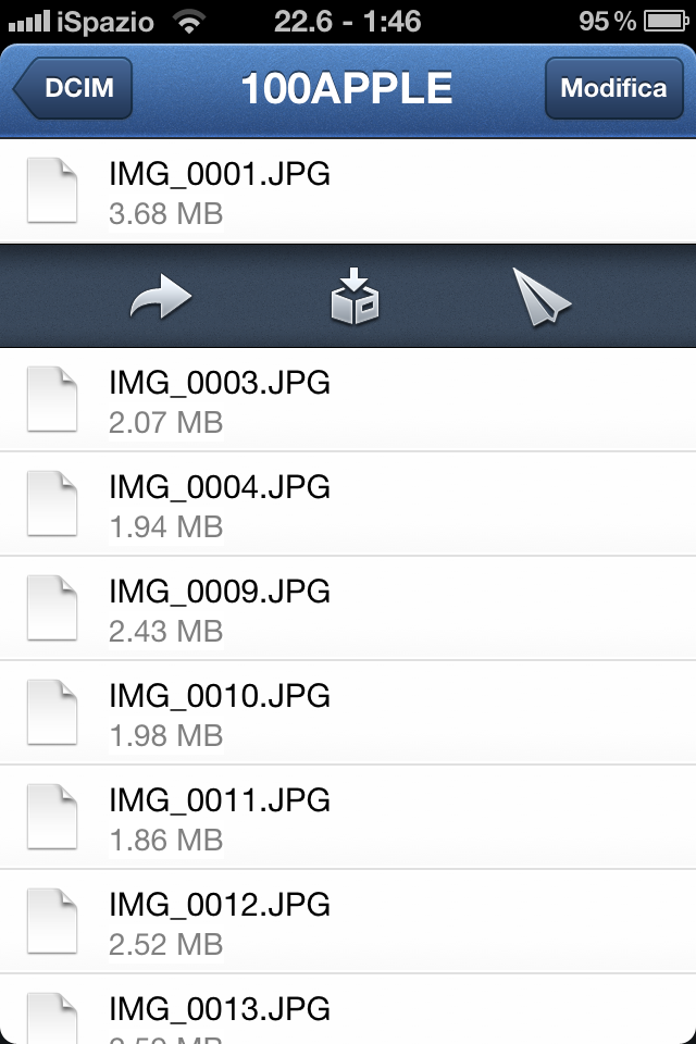 AirBlue Sharing si presenta come un file manager, tipo iFile, ci mostra l’intero contenuto del nostro dispositivo e tutto ciò che dobbiamo fare è selezionare i file che desideriamo inviare, ed il gioco è fatto. Il funzionamento è semplice ed intuitivo e nel caso in cui dovessero presentarsi dei problemi, un messaggio illustrerà come impostare l’altro dispositivo per renderlo idoneo al ricevimento.
