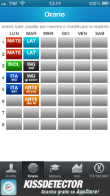 Premendo sul tasto Orario, nel menu che si trova nella parte bassa dell’interfaccia possiamo realizzare la tabella degli orari delle varie lezioni all’interno della settimana, una delle feature che ho sempre sognato avere nel mio smartphone quando ero studente scolastico! Premendo sulla casella opportuna potremo inserire le prime quattro lettere del nome della materia più una breve descrizione.