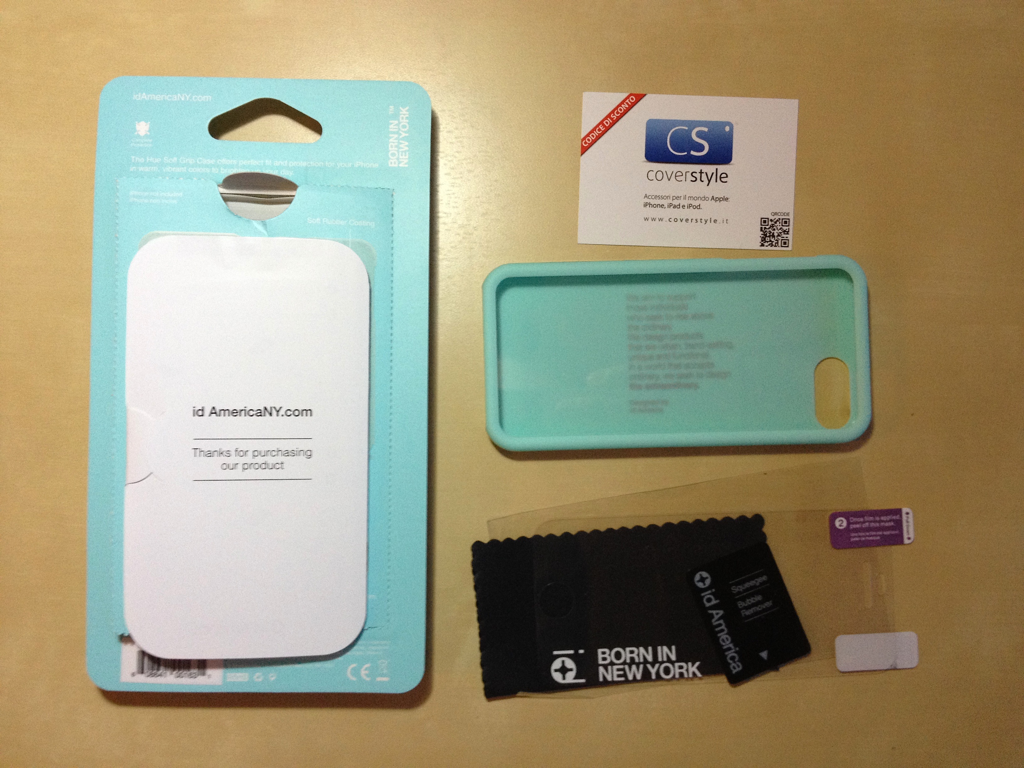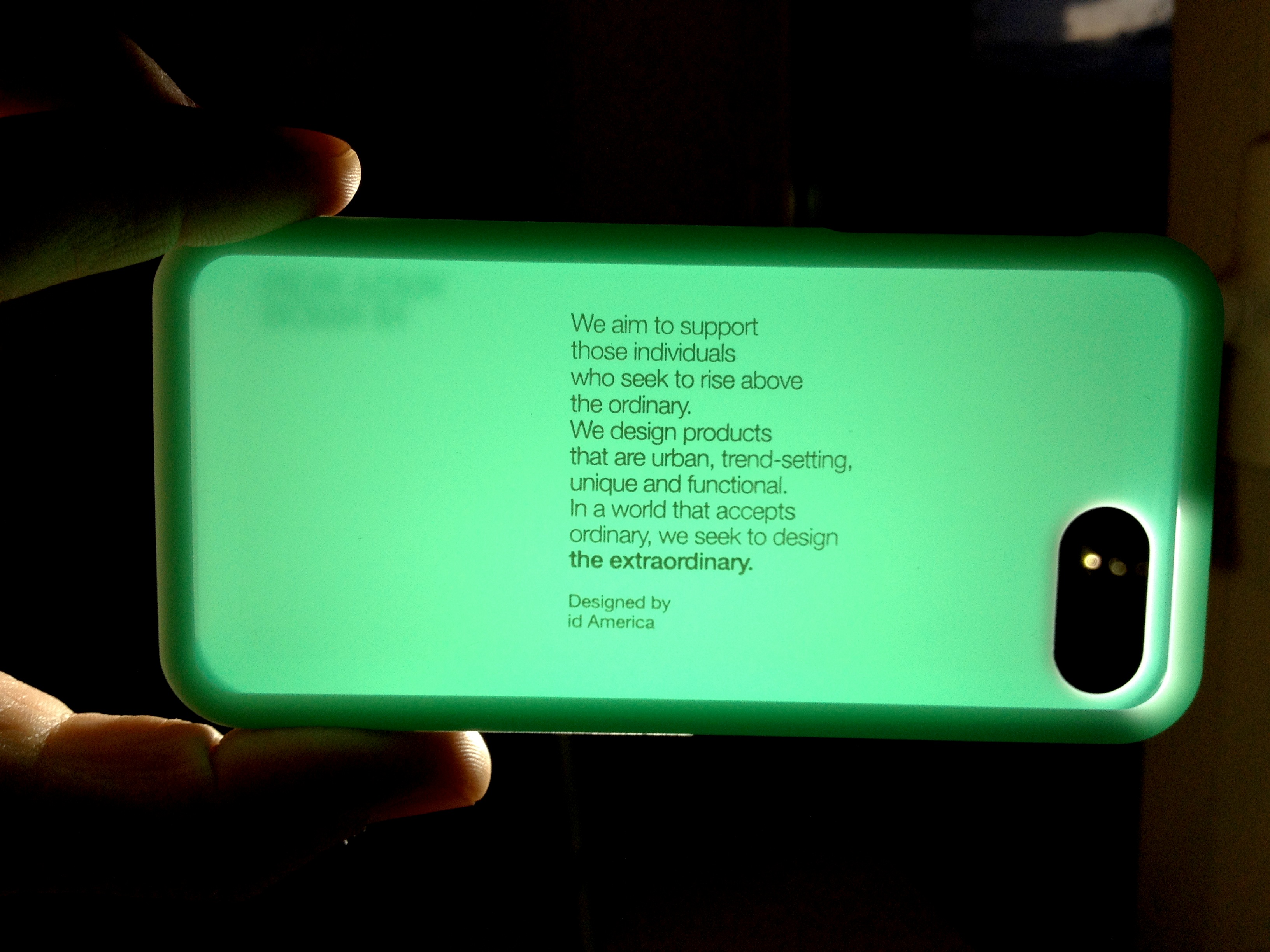 La cover è realizzata adottando delle tonalità di colore particolari, che vengono anche percepite diversamente in base alla luce. Sul retro possiamo riconoscere il marchio id America “BORN IN NEW YORK”, mentre all’interno troviamo una frase riservata al possessore del dispositivo, infatti viene nascosta dall’iPhone ed è maggiormente visibile se mettiamo il prodotto controluce: