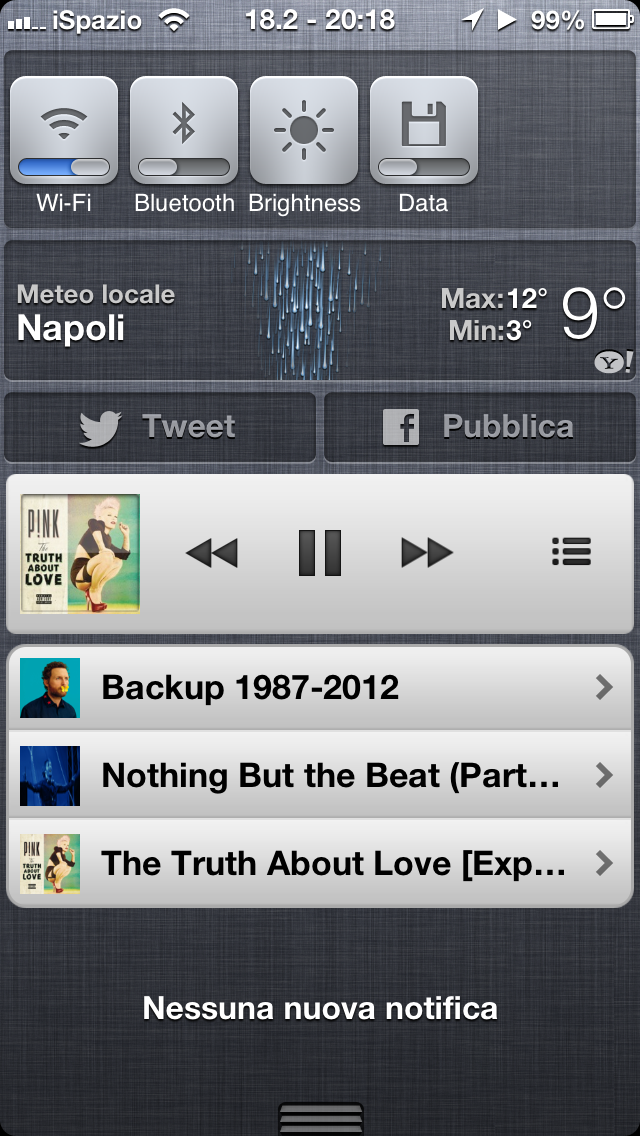 - Menu per navigare tra i brani dell’iPhone direttamente dal Widget