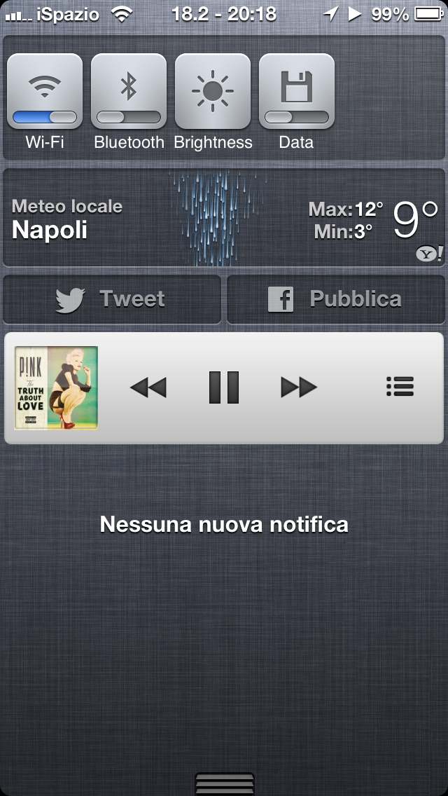 - Widget nel centro notifiche per la regolazione della riproduzione: play/pausa, precedente, successivo