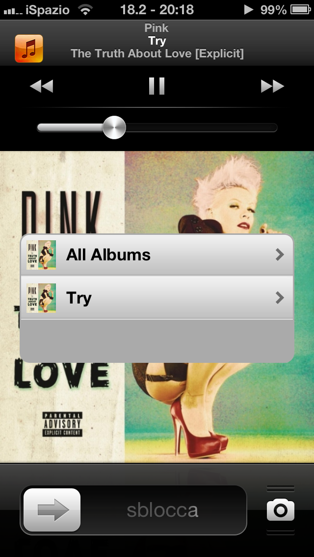 - Una nuova icona nella Lock Screen apre un menu che consente di navigare tra tutti i brani presenti nell’iPhone