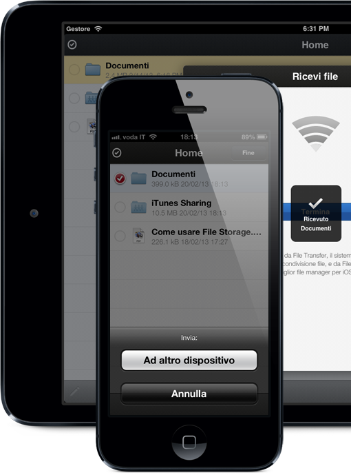 Con File Storage possiamo conservare qualunque tipo di file sul nostro dispositivo, consultarli anche offline, organizzarli come se ci trovassimo sul nostro computer e inviarli velocemente ad altri computer e dispositivi su WiFi e Bluetooth (quest’ultimo è disponibile solo tra dispositivi iOS).
