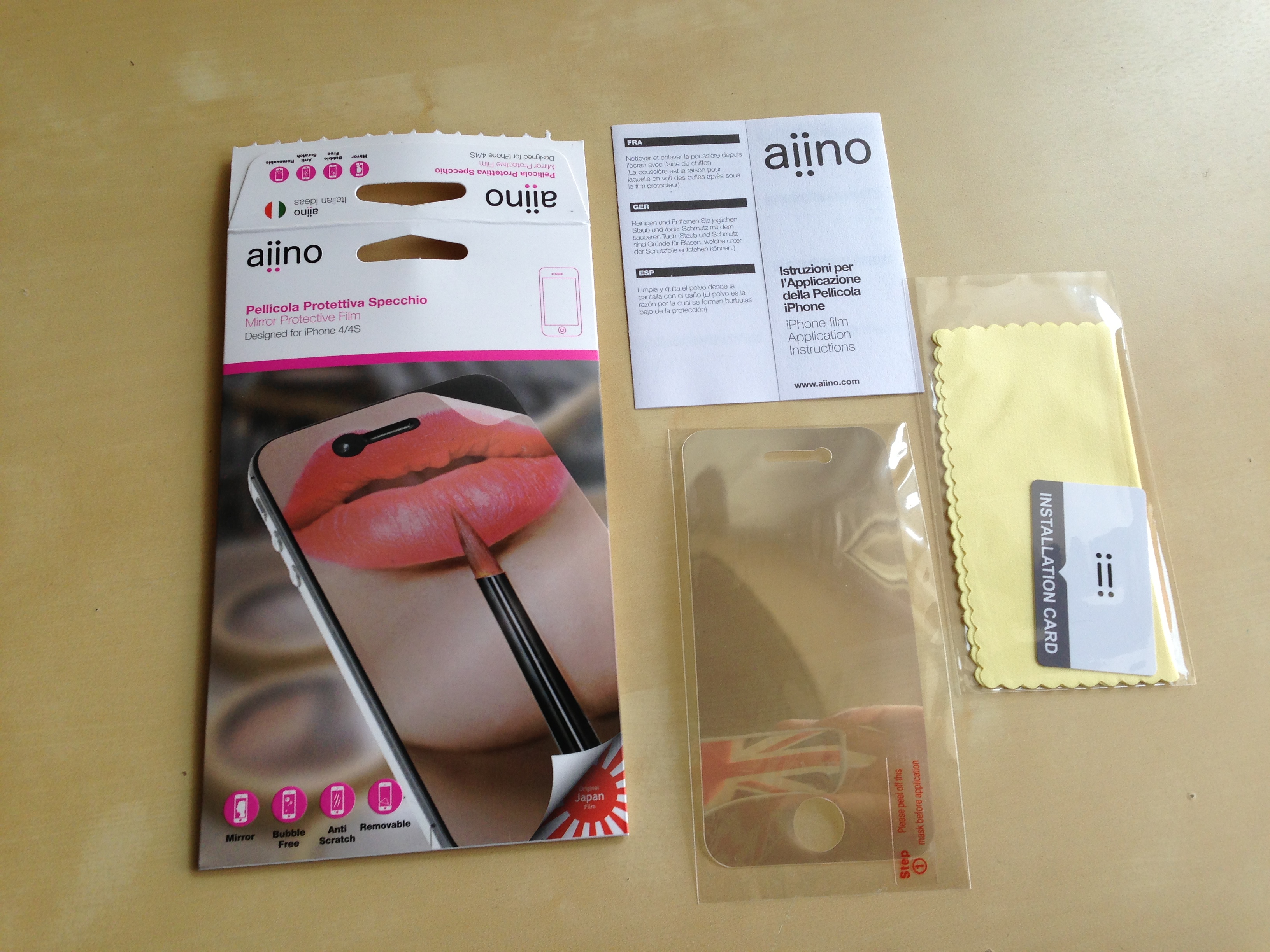 Eccoci ad un nuovo appuntamento con iSpazio Product Review, la rubrica nella quale presentiamo nuovi accessori dedicati ai nostri prodotti Apple. Oggi vi parliamo delle nuove pellicole aiino per iPhone 5 ed iPhone 4/4S prodotte con tecnologia giapponese che ne garantisce la massima qualità e facilità di installazione. Grazie ad American DataLine, distributore italiano, abbiamo avuto modo di provare i tre modelli: anti-riflesso ed anti-impronte, Ultra Clear ed infine un modello pensato principalmente per un pubblico femminile Mirror. Di seguito le nostre impressioni ed un video con il nostro test di resistenza.