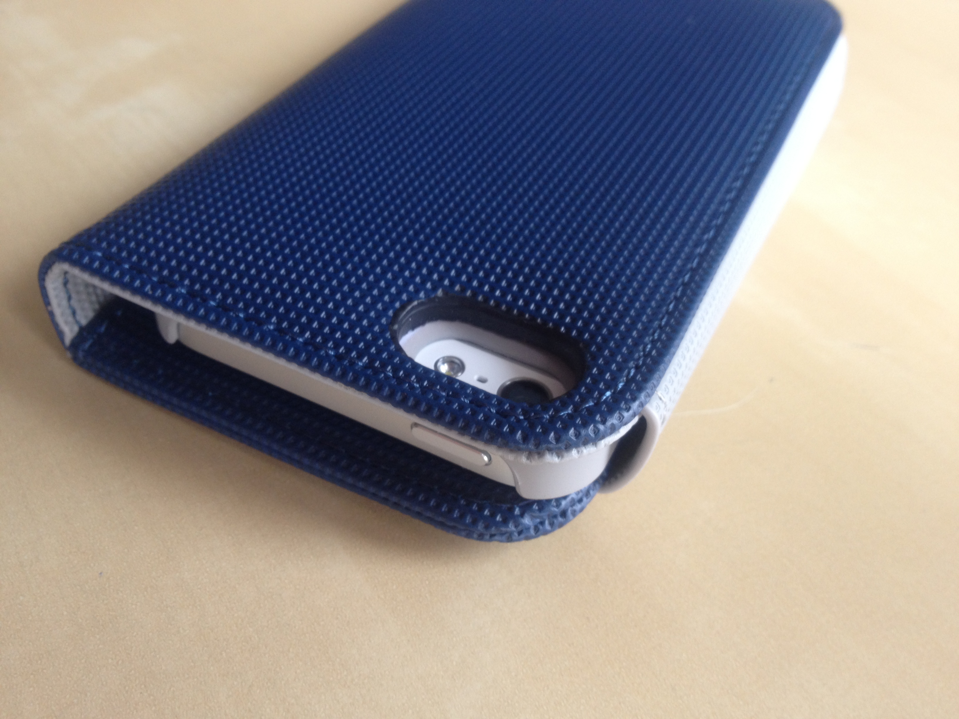 L’iPhone 5 si inserisce all’interno della Tri-Fold grazie allo scomparto in plastica, che non è altro che una cover. In questo caso, vi consigliamo di posizionare prima il bordo del vano SIM e poi lasciare scorrere all’interno della cover il bordo del dispositivo con i comandi del volume. La cover combacia perfettamente, ma anche l’estrazione è abbastanza semplice grazie alla flessibilità dei materiali.