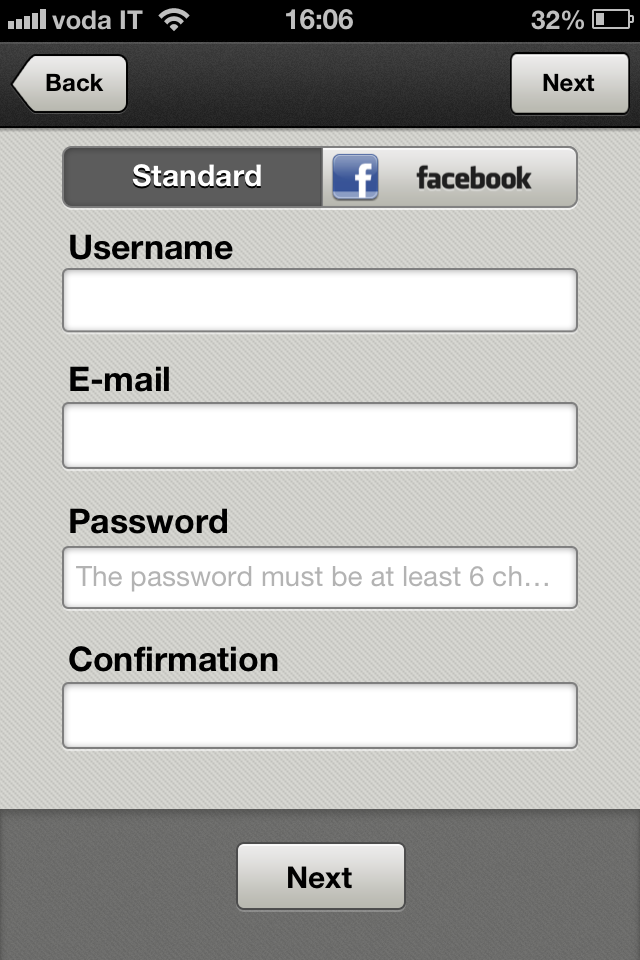 Avviando l’applicazione vi sarà chiesto di attivare i servizi di localizzazione, ed in seguto verrete posizionati sulla scheda “Profilo“, dalla quale potrete loggarvi con il vostro account Facebook o crearne uno nuovo grazie al tasto “Sign Up“.