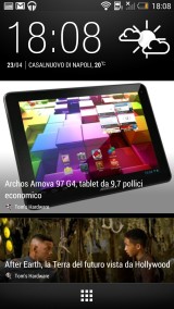 Il tutto avviene attraverso dei tasselli di varie dimensioni a seconda del testo e del contenuto da mostrare, occupando esattamente tutto lo spazio a disposizione nella schermata Home, salvo un ridotto numero di pixel riservato ad un orologio digitale sottoforma di Widget. Potremo far scorrere il Blinkfeed dal basso verso l’alto per leggere tutti i titoli delle notizie o gli stati e cliccare su quello di nostro interesse, leggendolo in-place, ovvero senza avviare applicazioni esterne. E’ possibile aggiornare manualmente i nostri Feed con un Pull-To-Refresh e impostare l’aggiornamento automatico soltanto su rete WiFi piuttosto che 3G + WiFi.