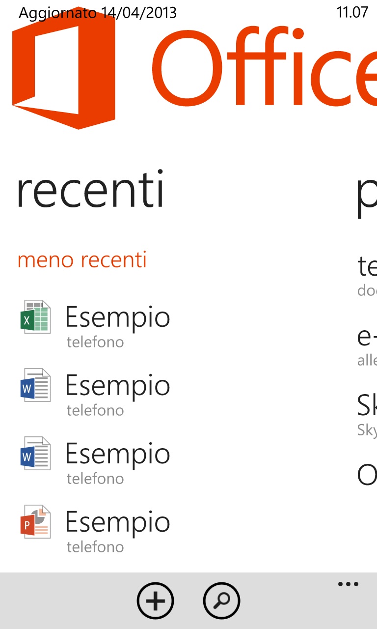 Da non sottovalutare, su ogni Windows Phone, la presenza dell’intera suite di Microsoft Office con Word, Excel e Powerpoint che ci permettono di visualizzare, modificare e creare dei documenti utili per il lavoro o per fattori personali. Office è un’applicazione, anche questa da scorrere in orizzontale, dove in primo piano troviamo tutti i documenti realizzati o aperti di recente. Spostandoci verso destra entreremo nella sezione “percorsi” dove potremo cercare e risalire ad un determinato documento specificando il percorso in cui si trova ovvero: all’interno della memoria del telefono, piuttosto che come allegato di una mail, SkyDrive oppure Office 365.