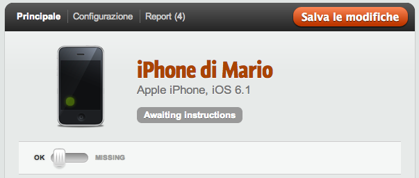 - Nel momento in cui ci accorgiamo di aver perso il dispositivo o appena dopo aver subito un furto, andiamo sul sito, effettuiamo il login ed ed attiviamo l’antifurto impostando il cursore su “missing”