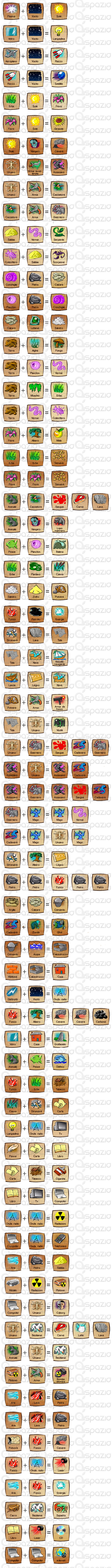 In questo primo episodio scopriremo come creare: Sole, Lampadina, Razzo, Satellite, Fiore, Girasole, Cenere, Assassino, Cacciatore, Guerriero, Serpente, Scorpione, Calcare, Conchiglia, Salnitro, Fungo, Verme, Erba, Coleottero, Mela, Sementi, Sangue, Carne, Lana, Lupo mannaro, Balena, Canna Polvere, Energia, Tela, Vascello navigante, Nave, Arma da fuoco, Vestiti, Cadavere, Mago, Umano, Legno, Cemento, Ghul, Calcestruzzo, Casa, Carbone, Grattacielo, Delfino, Tabacco, Carta, Tv, Libro, Cigareta, Computer, Radiazioni, Telefonino, Sigaretta, Sabbia, Plutonio, Cyborg, Latte, Bestiame, Bomba atomica, Laser, Squadra, CD, Internet