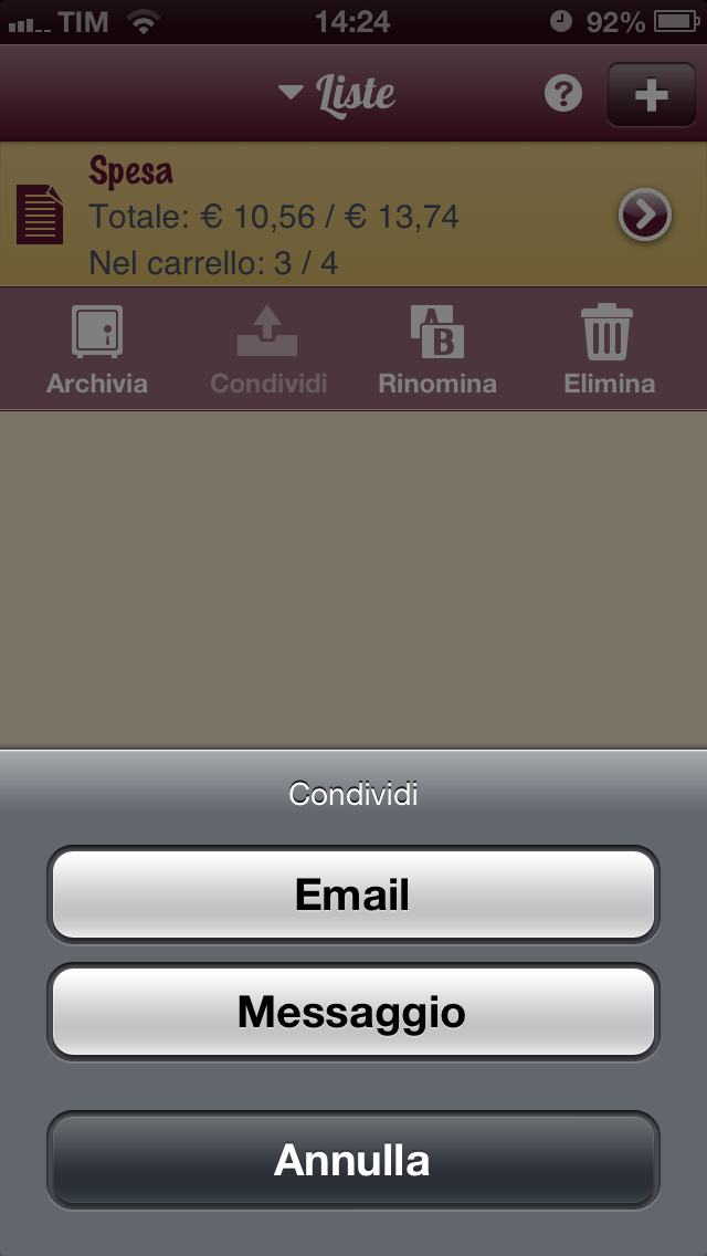 Ciliegina sulla torta? La possibilità di salvare il nostro database su Dropbox in modo da non perderlo in seguito di un ripristino del dispositivo, e di usare l’applicazione anche su terminali differenti da quello che usiamo solitamente. Le liste sono condivisibili anche tramite email, SMS ed iMessage.