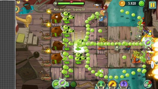 Questo significa che ad esempio per il primo episodio oltre alle 11 partite in modalità “normale”, dovremo affrontare i livelli molte altre volte per avere l’accesso all’episodio con protagonisti gli zombie pirata. E qui subentra il discorso acquisti in-app. Logicamente, pagando avremo tutto e subito, ma per avere tutto bisogna sborsare una cifra veramente sostenuta, decisamente al di fuori di ogni scelta logica e comprensibile.
