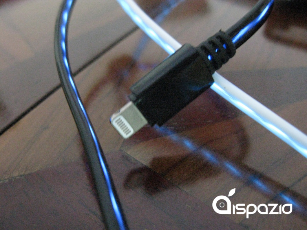 La sua particolarità, che ne giustifica l’acquisto, è la presenza di alcuni led lungo l’intero cavo che si illuminano generando una scia luminosa. L’effetto risultante è molto suggestivo e soprattutto la notte, al buio, vi consente di individuare all’istante dove avete lasciato il telefono in ricarica.