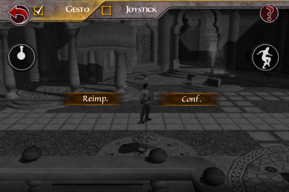 Sempre nella schermata principale, potrete accedere facilmente alle impostazioni di gioco selezionando l’icona raffigurante degli ingranaggi. Qui potrete scegliere il vostro stile di gioco preferito, ovvero comandare il principe tramite gestures o joystick virtuale. In ogni caso potrete spostare a vostro piacimento le icone delle azioni, avendo pieno controllo del personaggio.
