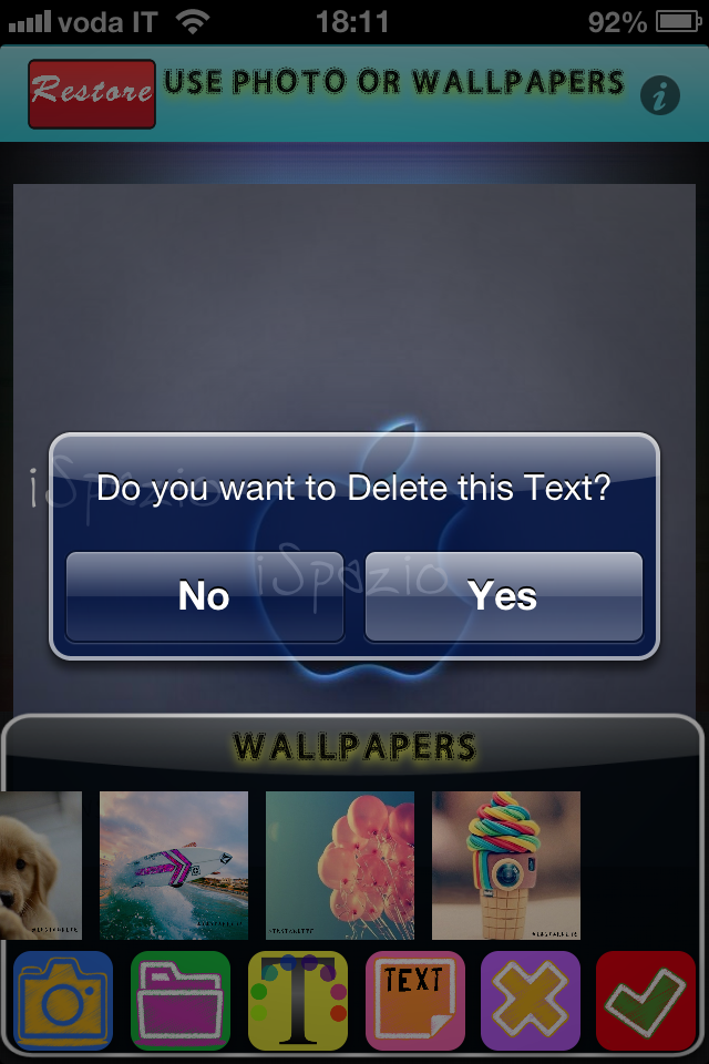 Subito dopo, in base alla vostra scelta, entrerete nella modalità “editing” dove potrete modificare la vostra immagine con il testo che più vi aggrada. In basso potrete trovare un menù dove scegliere i wallpaper che più vi piacciono, scattare direttamente una foto, selezionare un’immagine dalla libreria, scegliere il colore del testo ed il carattere che più vi piace.