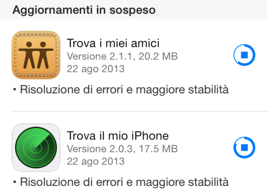 Trova i miei amici e Trova il mio iPhone, entrambe applicazioni rilasciate da Apple, si sono appena aggiornate correggendo una serie di bug ed introducendo la compatibilità con iOS 7. Non aggiornate se non siete sviluppatori.