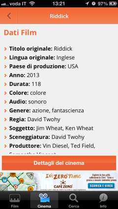 Come potete vedere dalle immagini qui sopra, potremo aprire la scheda relativa alla sala cinematografica più vicina a noi e visualizzare comodamente tutti i film attualmente disponibili, comprensivi di orari.