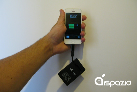 Un’ultima considerazione riguarda la ‘comodità’ d’uso, purtroppo il cavetto è agganciato sul lato lungo della batteria e non su quello corto, quindi non possiamo ripiegare la batteria dietro l’iPhone, ma è talmente leggera che anche tenerla appesa non è fastidioso.