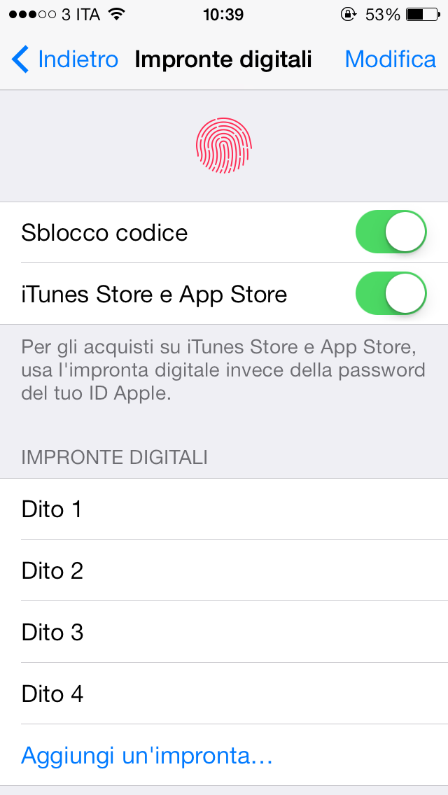 Oltre allo sblocco del telefono, come già detto all’inizio dell’articolo, il Touch ID può essere utilizzato anche per l’acquisto di contenuti dall’iTunes Store. Questo ci permetterà di risparmiare tempo e di non inserire ogni volta la password, ma basterà semplicemente sfiorare il tasto home ogni volta che dovrete effettuare un acquisto.