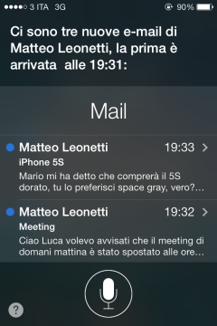 Tra le tante novità presenti in iOS 7 figurano anche notevoli miglioramenti apportati alle funzionalità di Siri, l’assistente virtuale di Apple. Una di queste è la migliorata integrazione della posta elettronica: Siri ora infatti riesce a leggere tutta la posta in arrivo ed a scriverne una nuova apposta per noi.