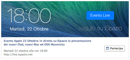 Manca ormai poco all’evento Apple fissato il 22 Ottobre in cui probabilmente assisteremo alla presentazione dei nuovi iPad, di OSX Mavericks, di nuovi Mac e qualche altra sorpresa.