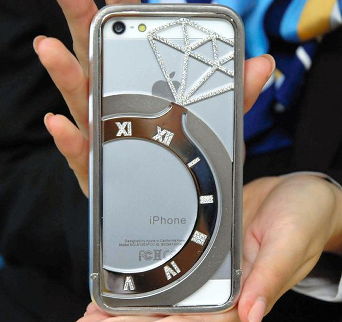 Il gioielliere giapponese Akiyama e la società di telefonia mobile Phonet, hanno deciso di produrre una custodia per iPhone 5 e 5S molto particolare. Ecco il risultato della combinazione di pietre e metalli preziosi.