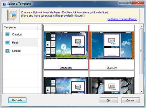 A sinistra invece c’è l’elenco di tutti i parametri e opzioni che consentono di personalizzare il flipbook (ad. esempio modifica icone dei pulsanti, aggiunta pulsante per la condivisione del file sui social network, ecc..). Potrai anche modificare la tipologia del catalogo sfogliabile scegliendo fra i 4 modelli proposti dal software (Classical, Neat, Float e Spread):