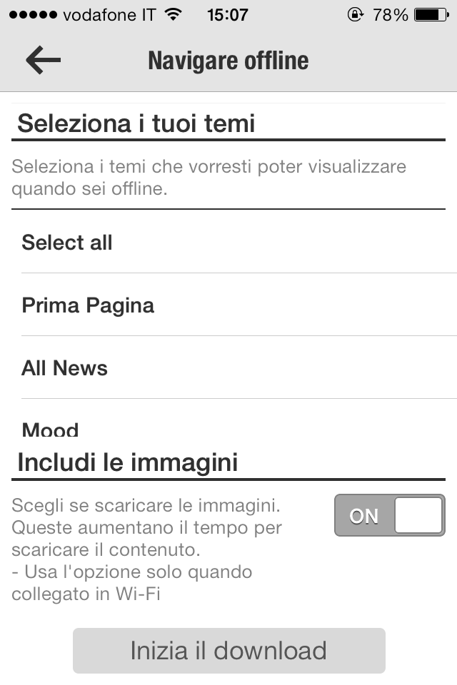 Oltre alla possibilità di cercare degli argomenti di vostro interesse, in alto a sinistra troverete il pulsante per accedere al menù laterale, dove potrete liberamente aggiungere ed organizzare i vostri topic. Oltre alle varie impostazioni, in questo menù visualizzerete la voce Navigare offline. Grazie a questa funzione, sarete voi a selezionare i temi più importanti, e l’app scaricherà i contenuti, rendendoli disponibili anche in mancanza di una connessione dati attiva.