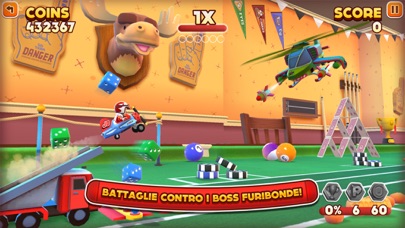 Sfida la morte con dozzine di nuovi veicoli! Ci sono moto, auto, aerei… addirittura un carro amato e un fuoco d’artificio impazzito! Combatti elicotteri telecomandati, schiva palle da biliardo e usa un pezzo di formaggio come rampa per saltare scodelle di zuppa!