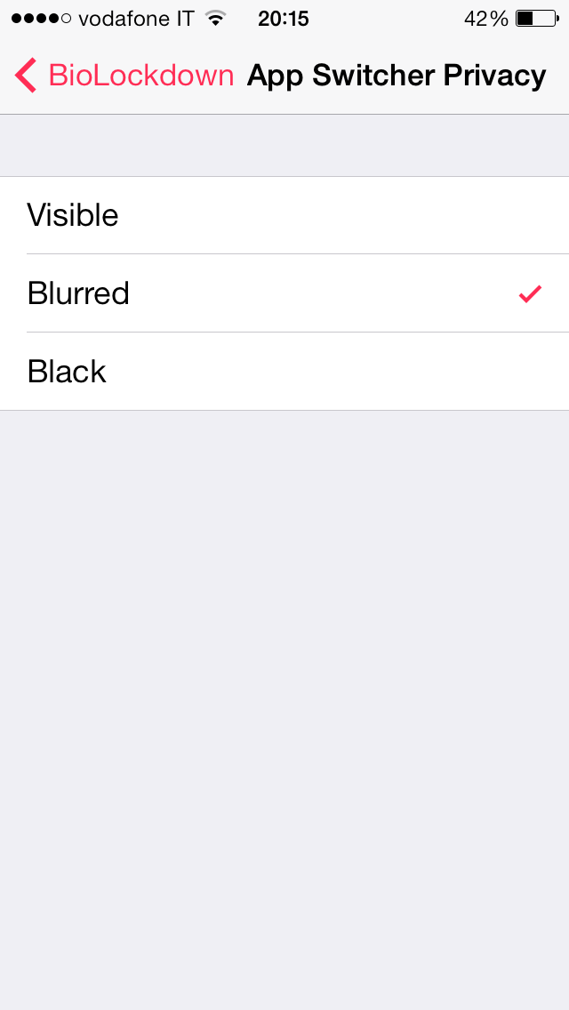 Dopo averlo installato troverete una nuova voce all’interno delle Impostazioni dell’iPhone, da lì potrete accedere a tutte le funzioni di BioLockdown.