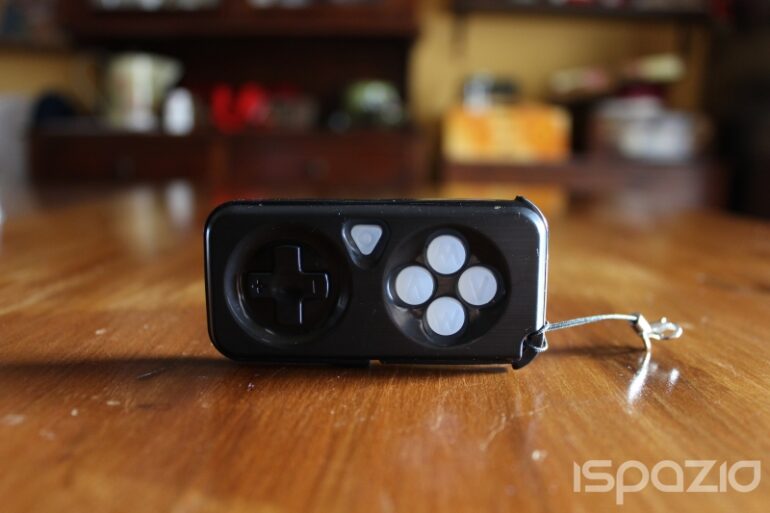 Come anticipato, iMpulse Controller funziona con iOS, OS X, Apple TV, dispositivi Android e PC Windows; pesa soltanto 30 grammi e misura 3.8 x 7.3 x 1.5 cm, risultando quindi estremamente leggero e portatile. Nella confezione troviamo un cordino per poterlo attaccare alle chiavi, una custodia per proteggerlo ma che al contempo si trasforma in uno stand per iPhone/iPad ed un cavetto microUSB-USB per ricaricarlo. Continuando ancora a parlare di dati tecnici, si ricarica in circa 3 ore e permette circa 10 ore di utilizzo come joystick, 20 ore come telecomando o ancora 30 di standby.