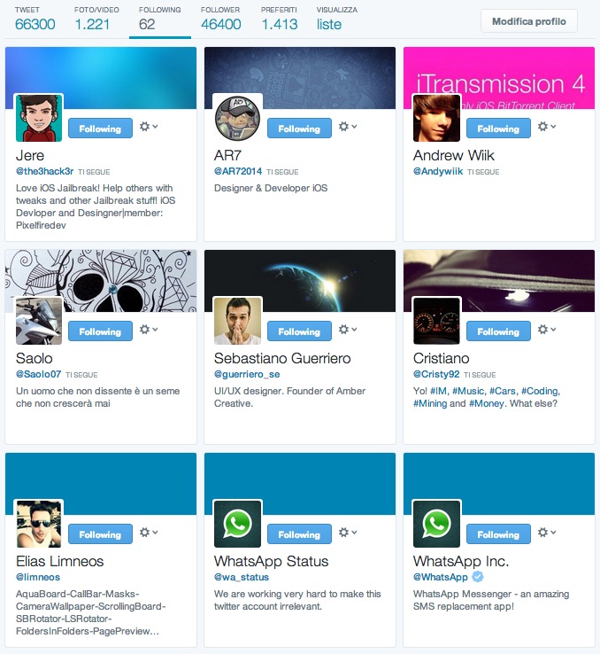Belle e piacevoli anche le sezioni follower e follow, dove viene mostrata un’anteprima del profilo degli utenti seguiti/che ci seguono comprensiva di foto e copertina, dando un tocco multicolore alla pagina.
