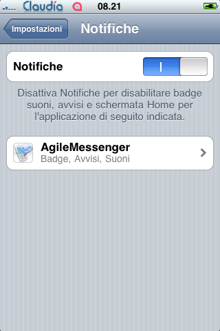 Per attivare le notifiche Push dovrete entrare in Impostazioni>Notifiche>AgileMessenger.