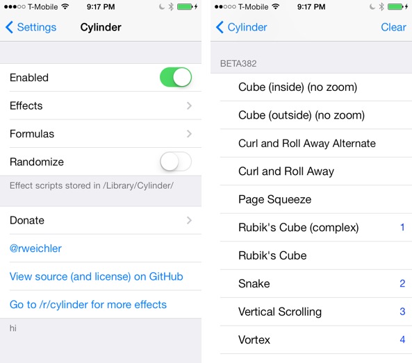 Come potete immaginare, Cylinder permette di aggiungere diversi effetti alle animazioni delle icone del vostro dispositivo.