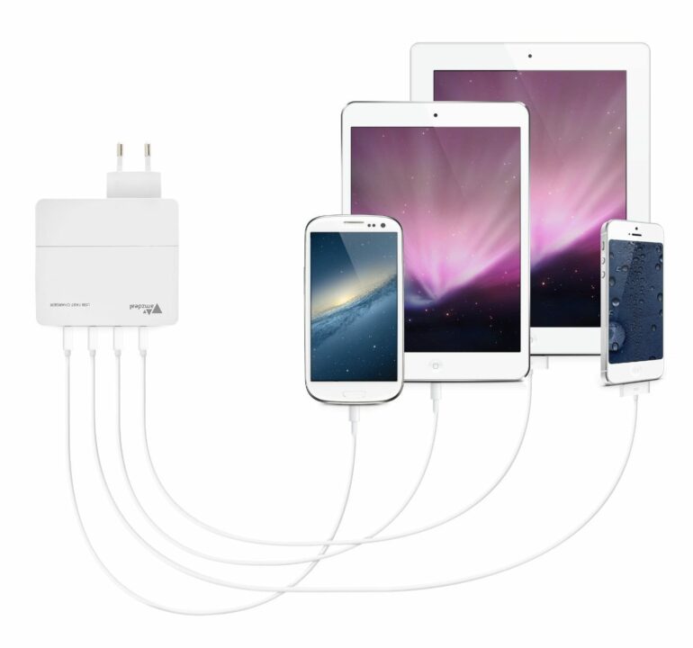 Se stavate pensando di acquistare un nuovo caricatore per iPhone o per iPad non potete farvi sfuggire quest’occasione, acquistando il caricatore da muro Amzdeal avrete, in un ingombro limitato, 4 porte USB per ricaricare: iPhone, iPad, smartphone, tablet, batterie supplementari, auricolari e speaker Bluetooth, iPod e qualsiasi altro accessorio può essere ricaricato semplicemente usando un cavetto USB.
