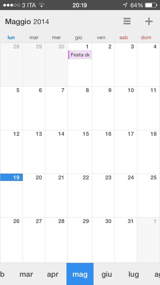 Potrete scegliere se visualizzare la pagina dedicata al singolo giorno, alla settimana, al mese o ai promemoria in modo da poter consultare sempre e rapidamente tutti gli eventi. Selezionando la modalità elenco visualizzerete tutti, e solo, gli eventi. Potrete decidere quali eventi visualizzare: lavoro, compleanni, festività.