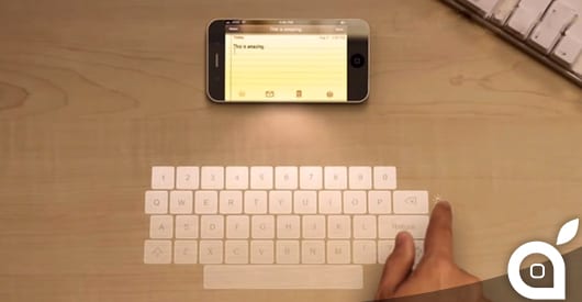 Già nel 2012, un affiliato Fox aveva divulgato un video-concept che mostrava avveneristiche ma inesistenti funzioni come immagini olografiche e una tastiera a proiezione per il nuovo iPhone. L’idea però deve essere piaciuta ad Apple che ha depositato un brevetto intitolato “iPhone Frequency Sensor / Magnifier Application” dove descrive un sistema che permetterebbe all’iPhone di utilizzare vari segnali acustici e letture di vibrazione per trasformare efficacemente una superficie piana, di qualsiasi tipo, in un touch panel funzionale. La superficie in questione verrebbe quindi divisa in varie parti che, toccate, potrebbero essere utilizzate per vari input. Il brevetto stesso prevede la possibilità che questo sistema possa essere usato per l’inserimento di testo tramite una tastiera, ma non solo. Sarebbero svariate, infatti, le possibilità come ad esempio navigare o riprodurre musica direttamente dall’iPhone.