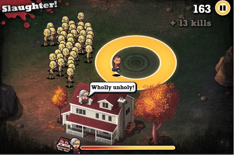 Sullo schermo compariranno, di tanto in tanto, delle zone nelle quali dovremo tentare di riunire il maggior numero di nemici che, nel giro di pochi secondi, verranno uccisi da un missile proveniente dall’alto. Man mano che andremo avanti coi livelli, gli zombie aumenteranno quasi quanto il panico della nonna.