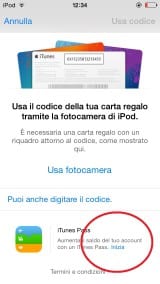 Da oggi ricaricare il proprio Apple ID di credito sarà ancora più facile. L’integrazione di iTunes Pass vi darà la possibilità di aggiungere credito al vostro account semplicemente mostrando la vostra scheda da PassBook ad un operatore all’interno di un Apple Store il quale provvederà alla ricarica scansionando il vostro codice personale, un po’ come siamo stati abituati per le ricariche telefoniche dal tabaccaio insomma.