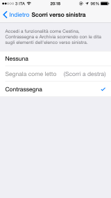 16. In Impostazioni > Posta, contatti, calendari è stata aggiunta l’opzione scorrimento, che permette di scegliere le azioni da abbinare allo scorrimento verso destra e verso sinistra all’interno dell’applicazione Mail.