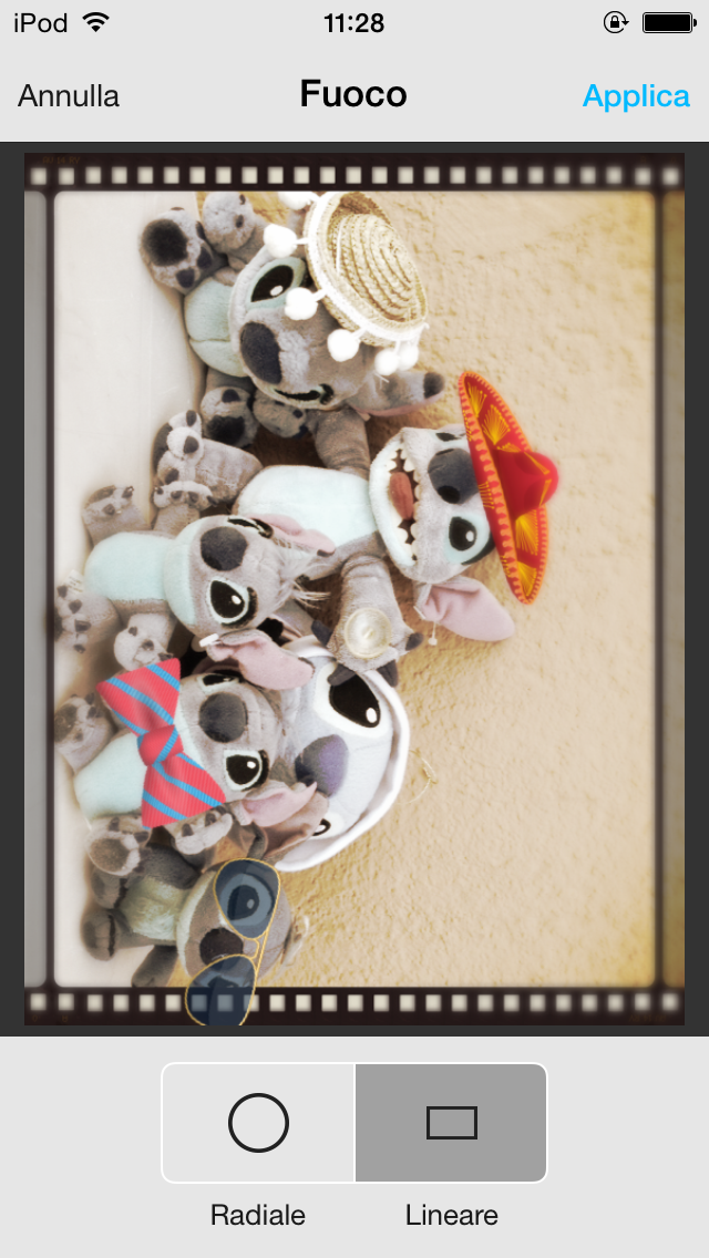 - Fuoco permette di giocare appunto sulla messa a fuoco dello scatto evidenziando una zona ritratta invece che un’altra.