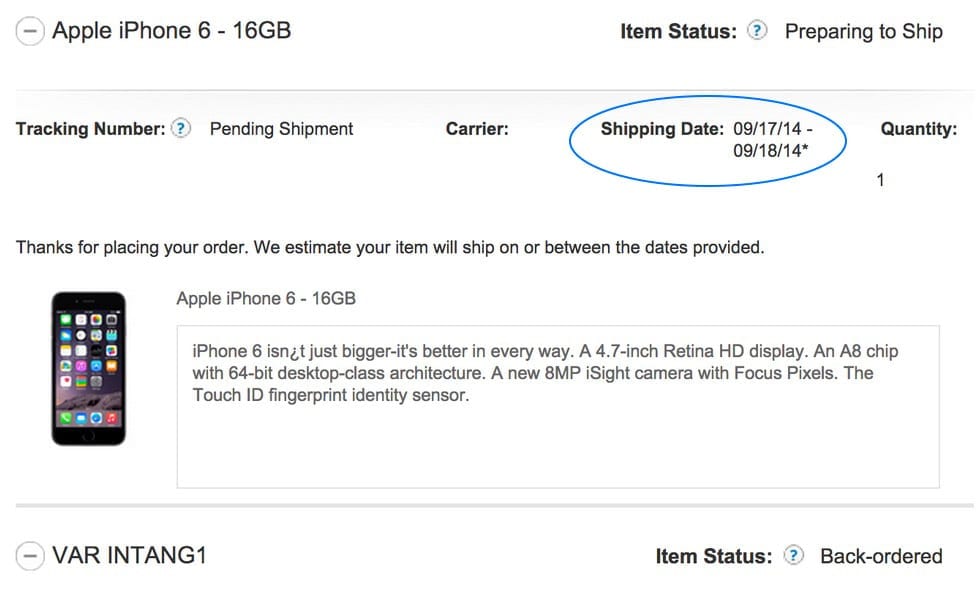 I primi utenti che ordineranno il telefono lo riceveranno entro il 19 Settembre, tuttavia l’esperienza degli scorsi anni ci insegna che probabilmente qualche consegna sarà evasa addirittura nei giorni precedenti come il 17 o il 18 Settembre, come dimostra questo screenshot scattato pochi minuti fa: