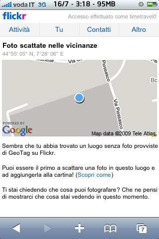 L’utilizzo di questa funzoine è molto semplice: basta aprire l’home page, cliccare su “Nelle Vicinanze” ed autorizzare sia safari che il sito web ad utilizzare la geolocalizzazione. Successivamente visualizzeremo la mappa di google con le foto scattate nelle vicinanze.