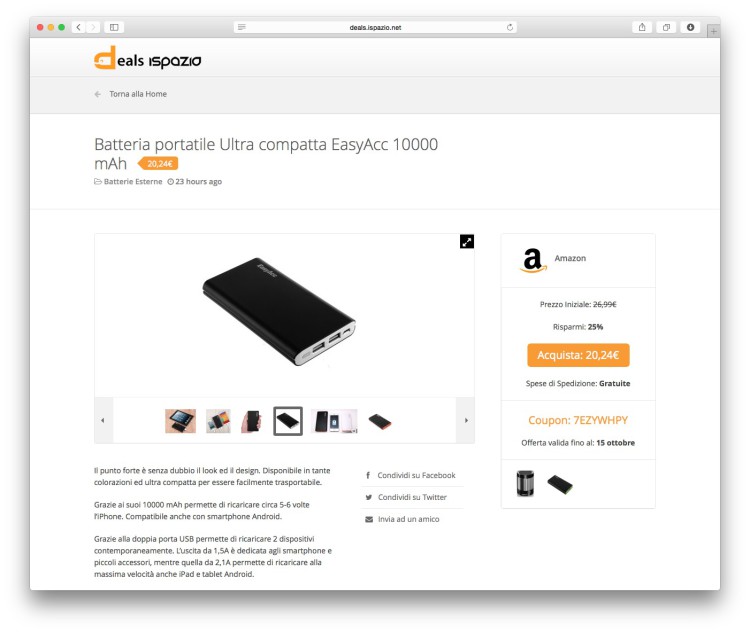 Ogni offerta avrà una durata limitata e la data di scadenza sarà visibile dal blocco laterale destro. Dovrete quindi affrettarvi perchè superata la data di validità dell’offerta (o il numero di scorte disponibili), la scheda del prodotto sparirà completamente dal sito.