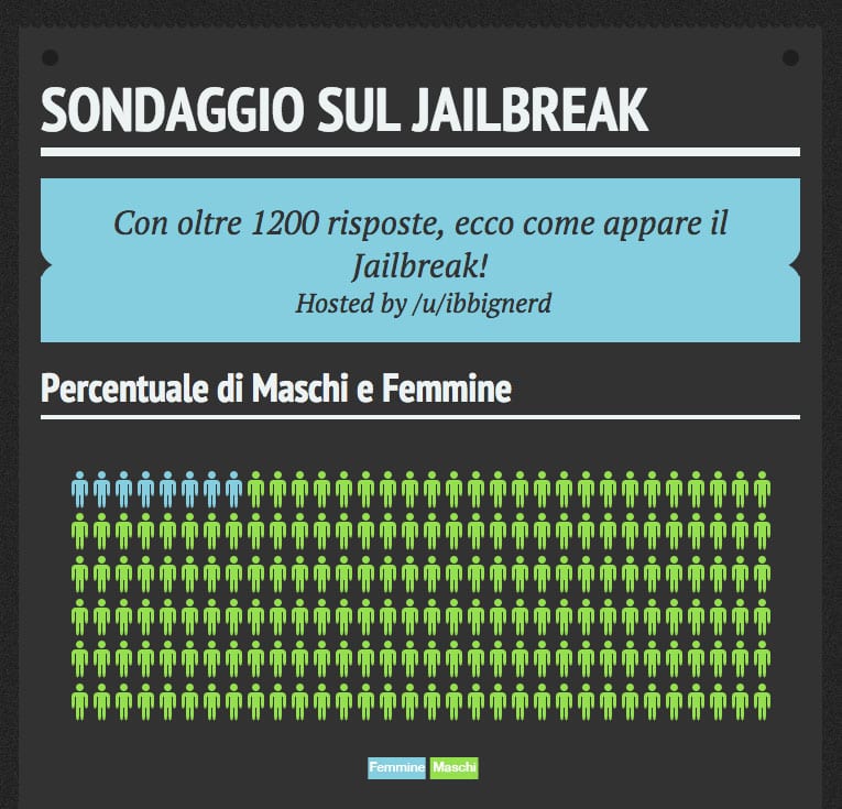 Il sondaggio è stato portato avanti all’interno della pagina dedicata su Reddit, dove ogni giorno centinaia di utenti da tutto il mondo discutono e condividono informazioni riguardanti il Jailbreak. Siete curiosi? Ecco l’infografica tradotta completamente in italiano.