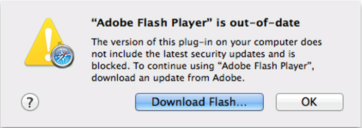 La notifica di richiesta di aggiornamento dovrebbe arrivare automaticamente su Safari una volta che visitate una pagina che utilizza Flash Player.