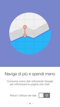 Accertatevi innanzitutto di aver installato la versione più recente del browser sul vostro dispositivo iOS. Se installate Google Chrome per la prima volta sarà la stessa app a chiedervi di attivare o meno la modalità di risparmio dei dati di navigazione.